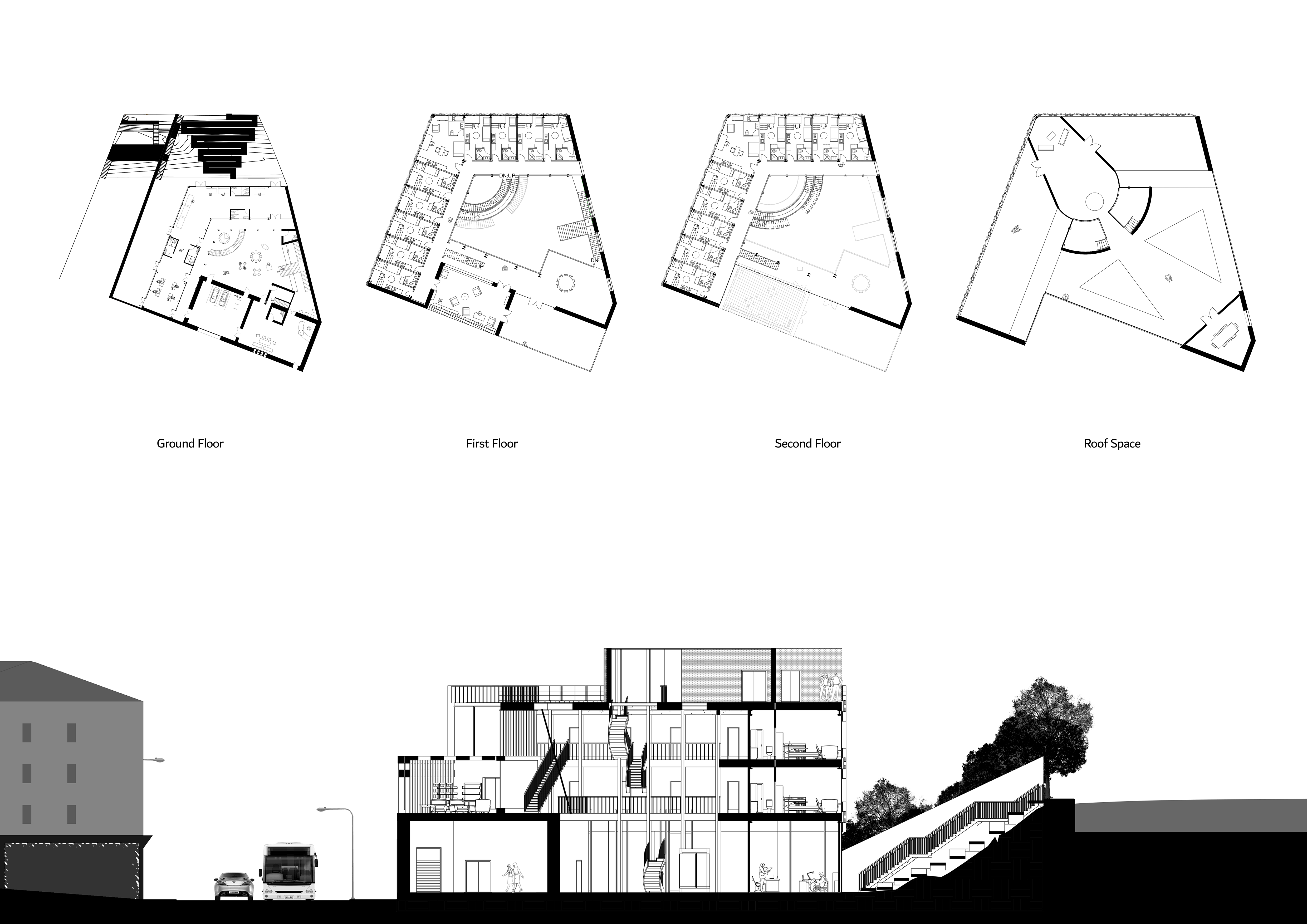 With 2 feature retracting domes and a crane dedicated to moving the items within and without the building, there is a strong aspect of performance to the design. Intended to attract and garner interest in both the local town as well as the activities and items inside.